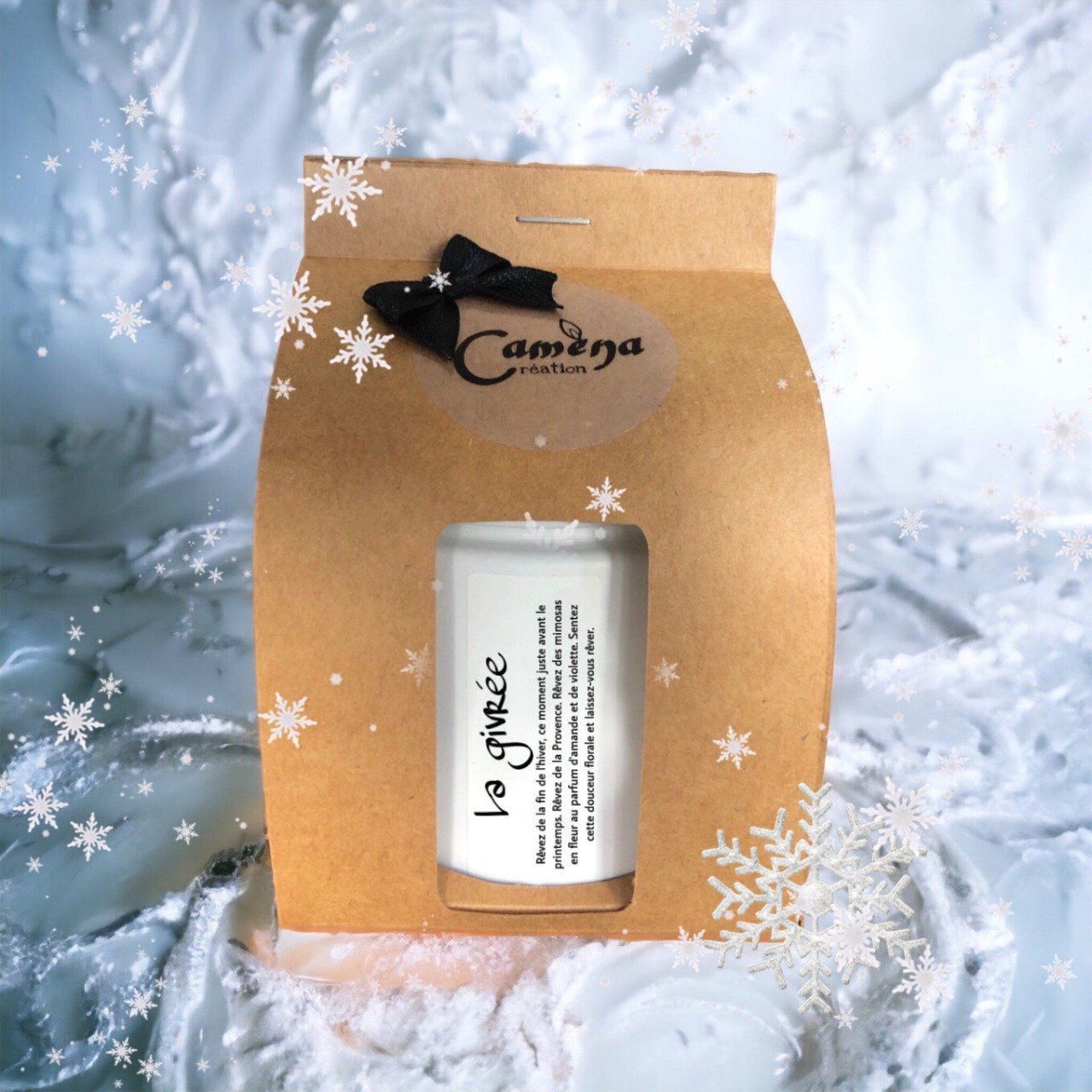 Laissez-vous envoûter par la bougie artisanale La Givrée, une création délicate qui capture la magie de la fin de l’hiver, lorsque la nature s’éveille doucement pour laisser place au printemps.